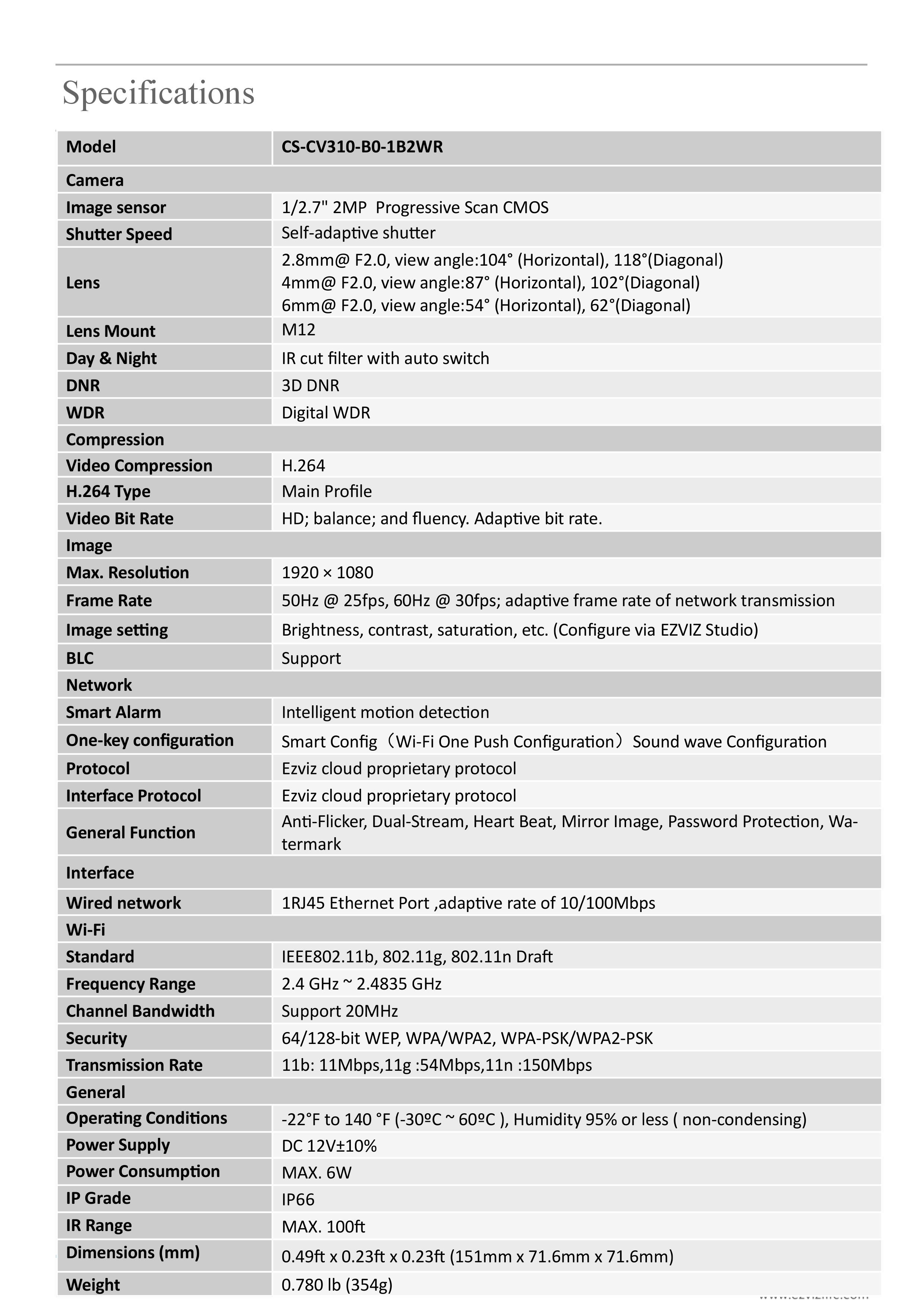 | 1920 X 1080, 0.01 Lux @ (F2.0, AGC ON), 0 Lux |